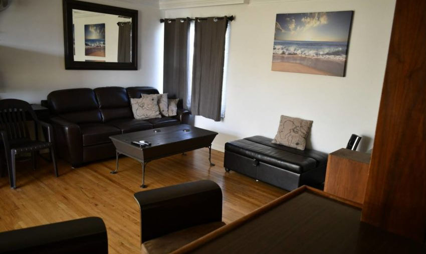 This 3 Bedroom House is right by the beach in the quiet neighborhood of south mission beach. The house has a den with extra beds. Currently, six students share the house, and they love the location. The house is fully furnished, and you can walk to the beach and the bay. The house has a garage with surfboards and kayaks and a washer and dryer. There is an outside dining area and two off-street parking spots. The home also has a bbq, an outdoor patio, two full-screen TVs, a bar, and many more amenities.